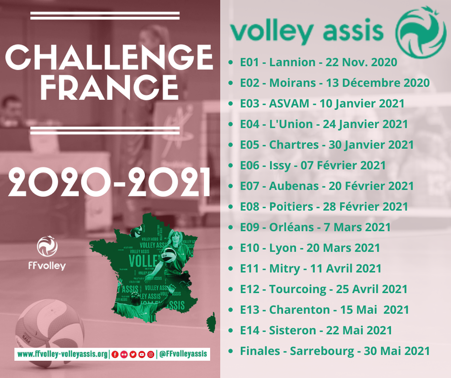 Le planning de la nouvelle saison du Challenge France Volley Assis vient de tomber.